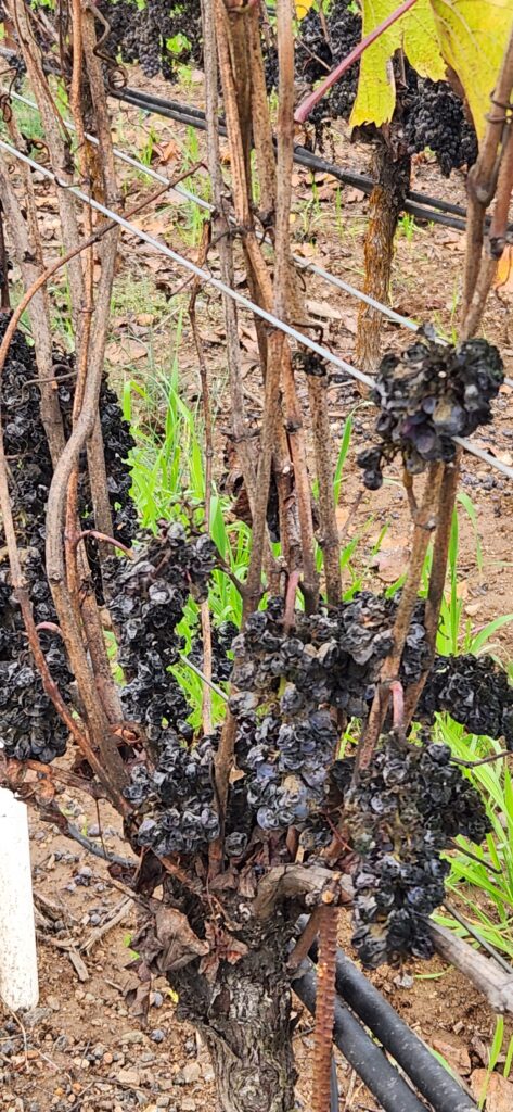 The road to Benovia is not as picturesque as in other parts of Russian River, more industrial than rustic. As we approached the winery (in November) through the vineyard, we noticed that there was still fruit on the vines. Or more accurately, there was fruit rotting on the vines. Evidently the sales of lesser-known premium wine are depressed. The owners decided it was smarter to feed grapes to the birds than to make wine that wouldn’t be sold. To say the least, this is a sad trend.