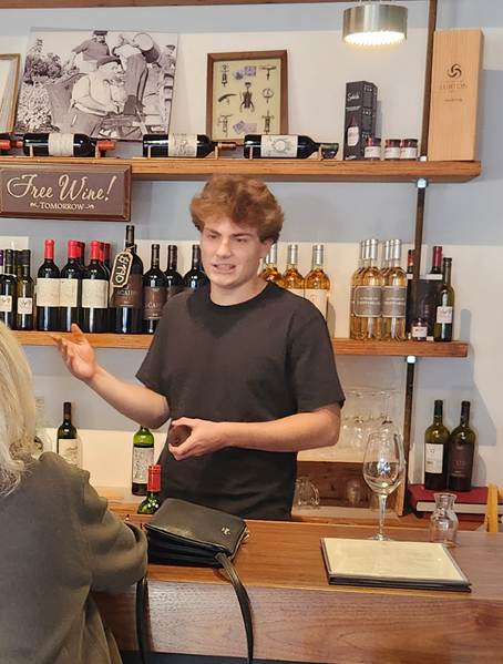 Gonzague and his wife Claire (who also has a long history in winemaking) induced their nephew, Jean-Joseph Cogombles to work in the tasting room. Thus it came to pass that we were served both Bordeaux and Sonoma wines by a family member. Jean-Joseph is a young man who is surely destined for a life in wine; we found his wine knowledge to be at the sommelier level.